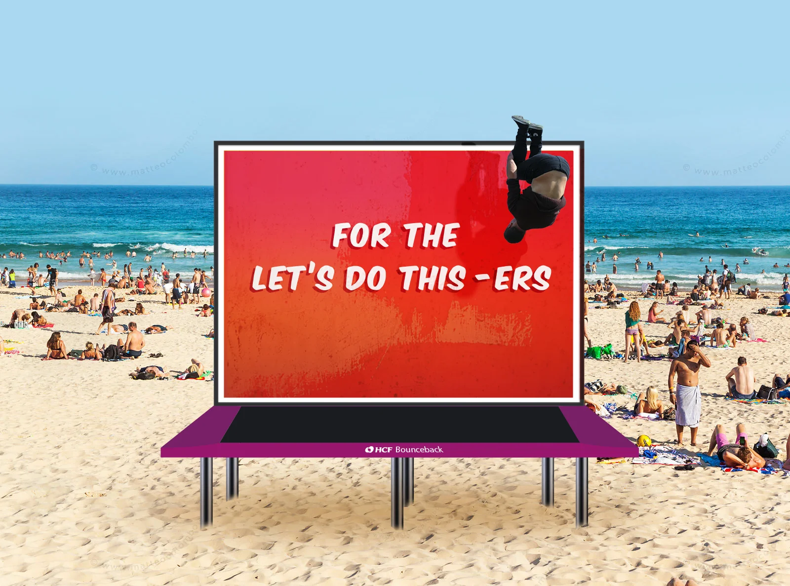 We wanted to stay well away from that, and instead remind them that insurance can enable them to continue their awesome, active lifestyles without worrying. We wanted to say: Don’t give up the risky stuff because we’ve got your back, and decided that making “live action” billboards was the best way to do so.